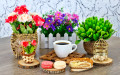 Puzzle Gallery » Flowers » Cup of Coffee, Macarons and Flowers