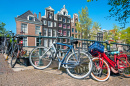 Bicycles on a Bridge in Amsterdam, the Netherlands