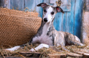 Whippet Lying on Hay