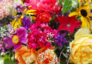 Farmer with Fresh Gladioli and Dahlia Flowers