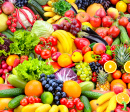 Vegetables and Fruits on a Rainbow Background
