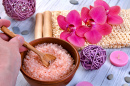 SPA Concept with Aromatic Salt and Orchid Flowers