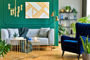 Modern Interior with Gray Sofa and Navy Armchair