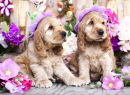 American Cocker Spaniel Puppy and Flowers