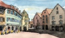 Watercolor of the Stone Bridge in Regensburg, Germany