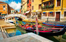 Colorful Houses with Boats in Burano Island, Italy