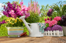 Gardening Tools and A Straw Hat On the Grass In the Garden